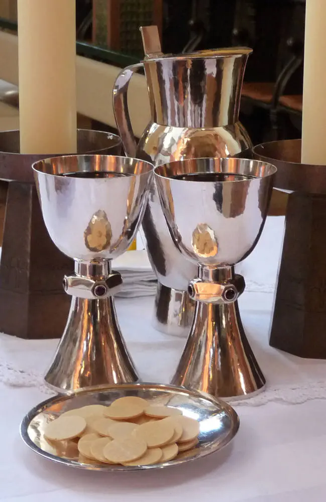 Nach den Erfahrungen der Corona-Pandemie feiern wir das Abendmahl in unseren Gottesdiensten nun mit Einzelkelchen und Selbst-vom-Teller-Nehmen der Hostie.